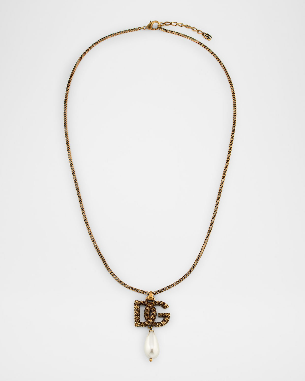 DG Logo and Pearly Drop Pendant Necklace