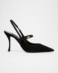 - Accented with signature gold-tone DG hardware, these pumps by Dolce&Gabbana are crafted from supple suede with smooth leather trim - 3.50 in / 90 mm stiletto heel - Pointed toe - Mary Jane buckle strap - Elastic slingback - Leather outsole - Professional cleaning recommended, spot clean - Made in Italy