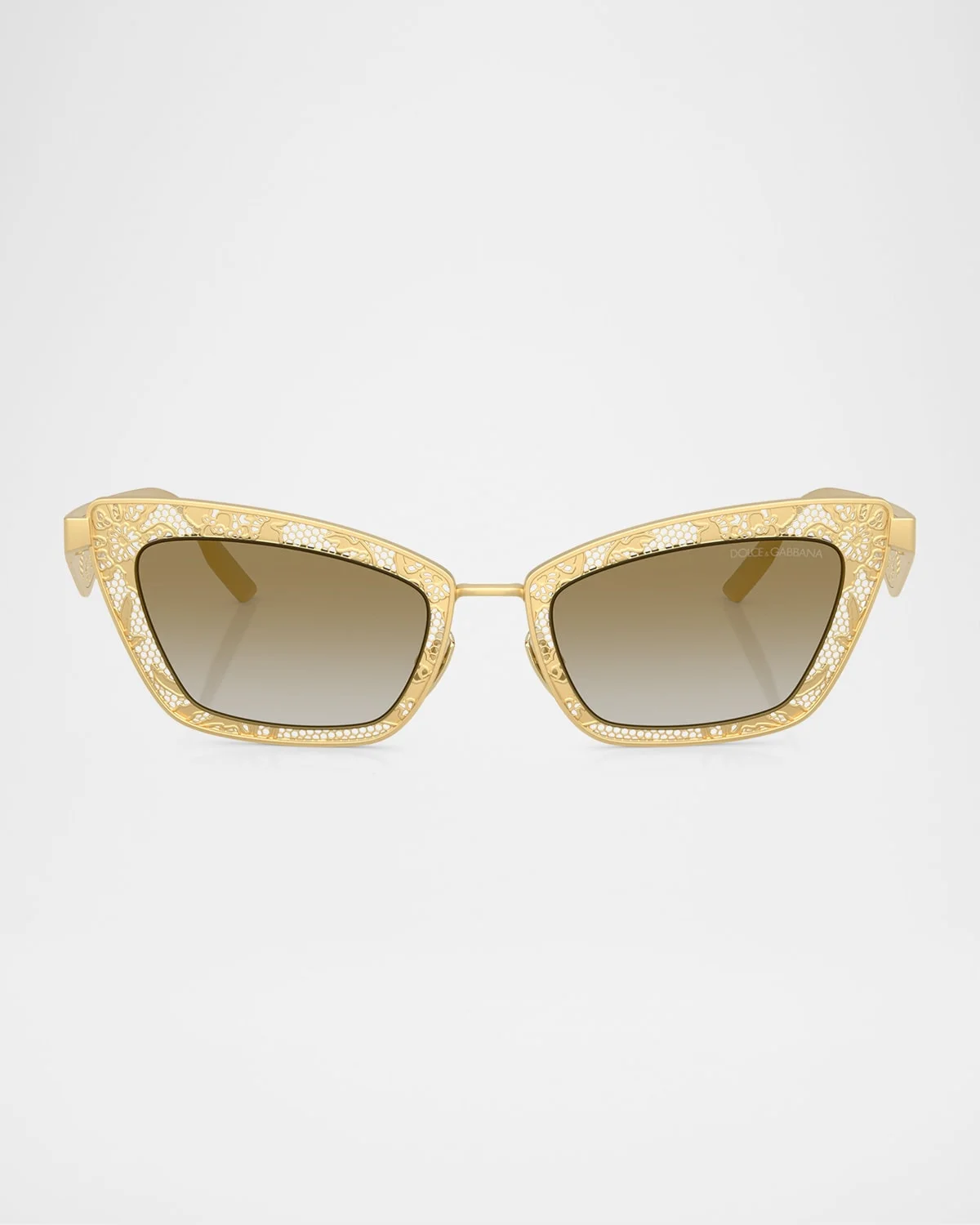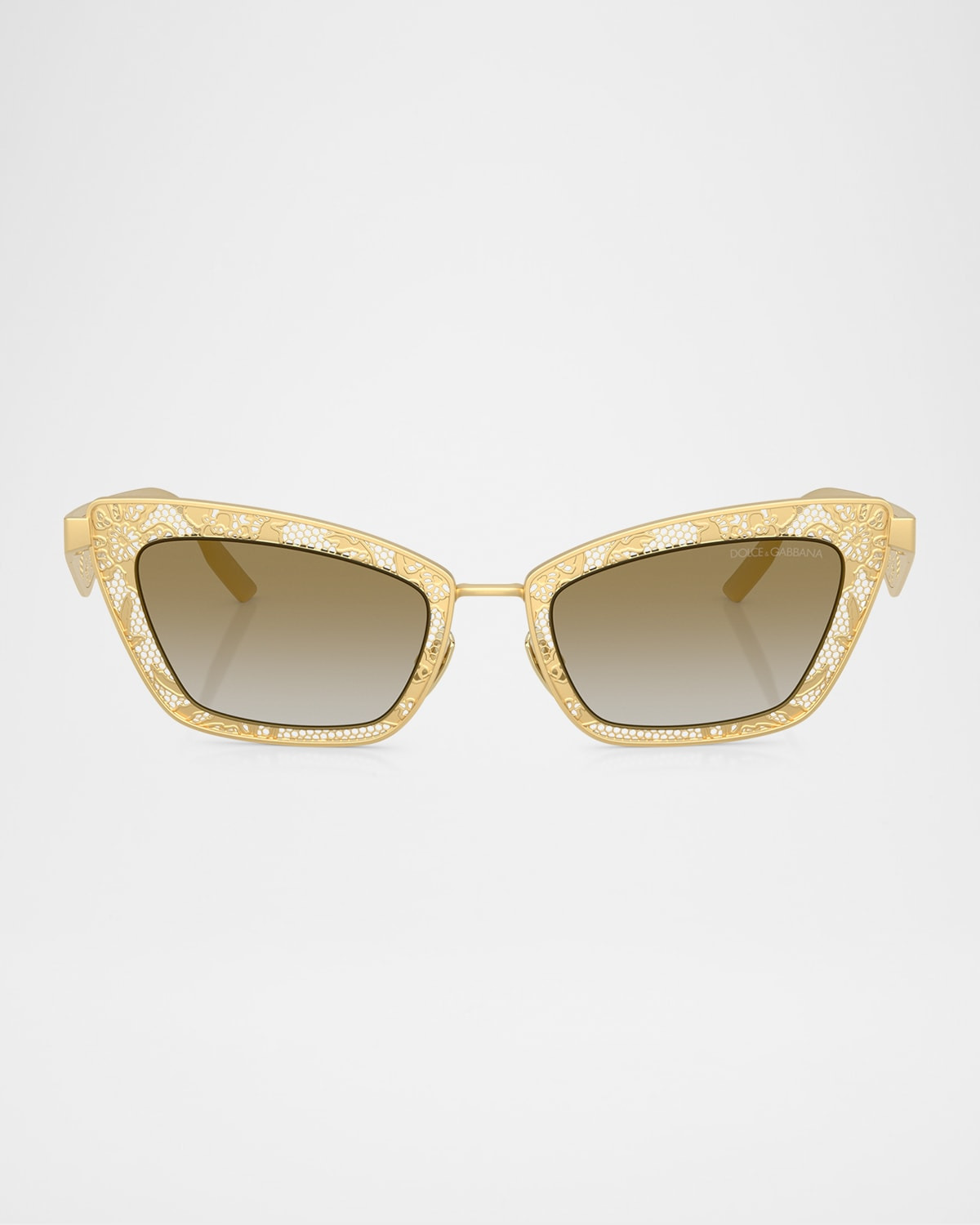 - Dolce & Gabbana "DG2311" cat-eye sunglasses in steel - Eye/bridge/temple (in mm): 51-20-145 - Features iconic lace motif - Mirror lenses - Adjustable nose pads - Thin, tapered arms - Comes with a cleaning cloth and case - Steel/plastic - 100% UVA/UVB protection - Made in Italy - Proposition 65 warning for California residents