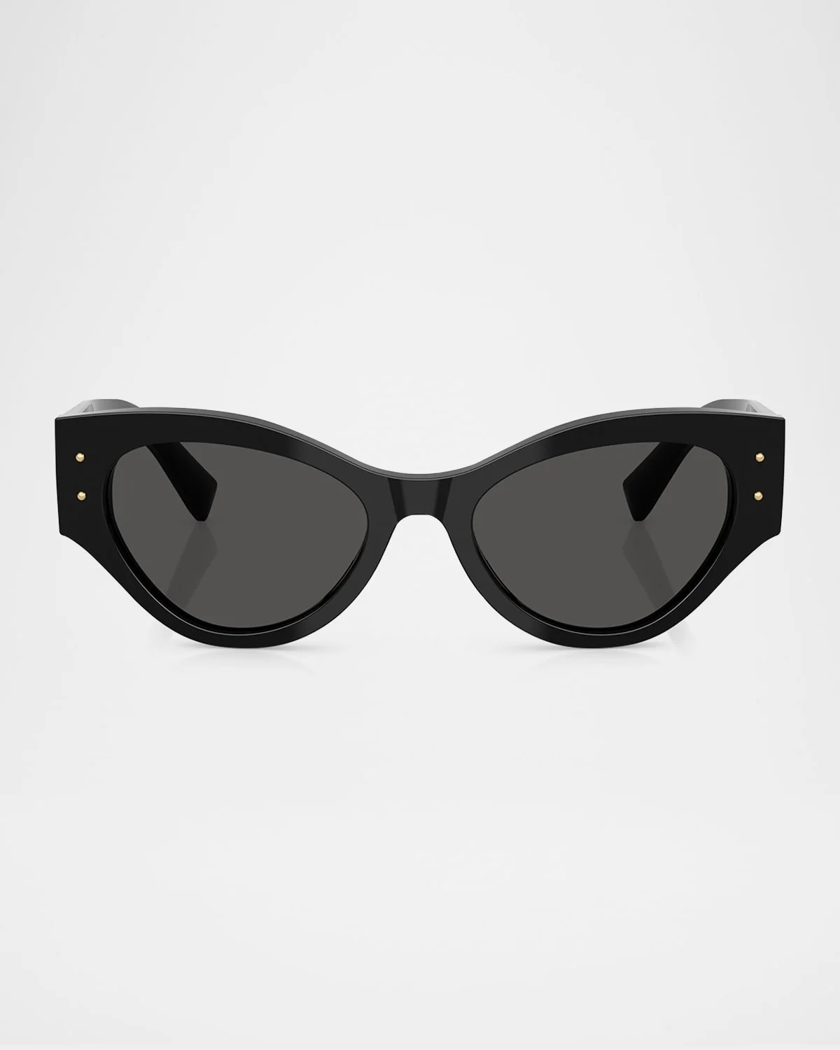 - Dolce & Gabbana "DG4480F" butterfly sunglasses in acetate - Eye/bridge/temple (in mm): 53-19-140 - Features iconic lace motif - Solid lenses - Saddle nose bridge - Thick, tapered arms - Comes with a cleaning cloth and case - Acetate/plastic - 100% UVA/UVB protection - Made in Italy - Proposition 65 warning for California residents