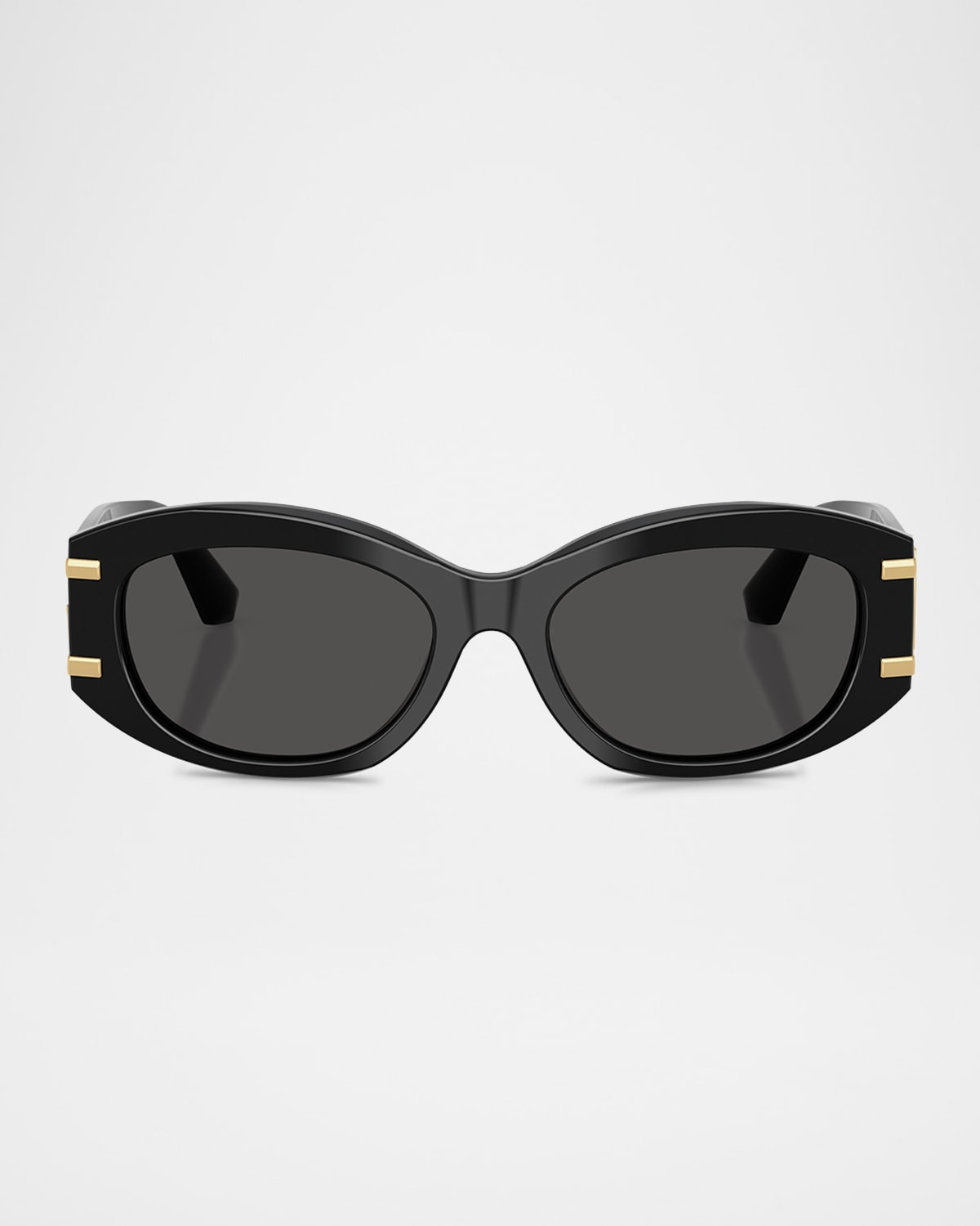 - Dolce&Gabbana "DG4502" oval sunglasses in acetate - Eye/bridge/temple (in mm): 55-18-145 - Solid lenses - Saddle nose bridge - Thick tapered arms - Classic interlocked logo at the temples - Comes with case and cleaning cloth - Acetate - Spot clean - 100% UVA/UVB protection - Made in Italy - Proposition 65 warning for California residents