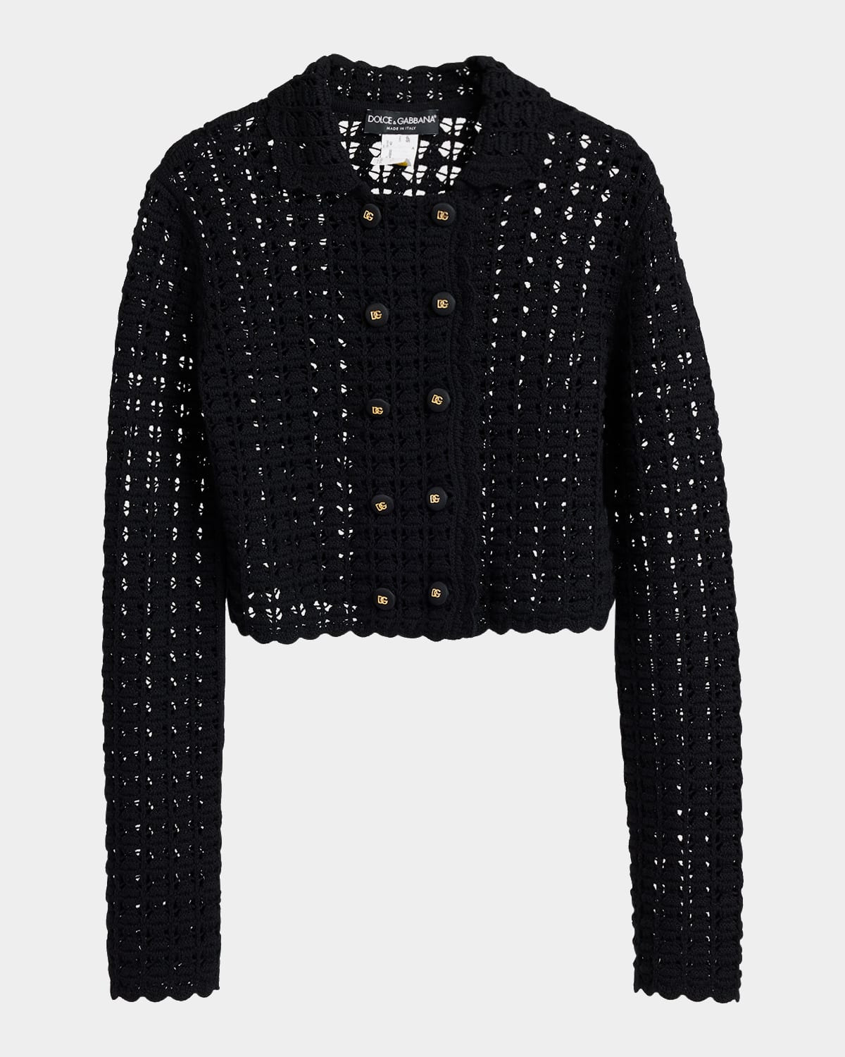- Dolce&Gabbana jacket in crochet knit - Spread collar; double-breasted front - Long sleeves - Straight fit - Cropped length - Virgin wool - Made in Italy