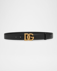 An elegant and sophisticated accessory, this Dolceamp;Gabbana leather belt is perfect for adding a touch of class to your outfit. Approx. 1.2" wide Adjustable fit DG pin buckle with torchon inserts Leather belt loop Made in Italy