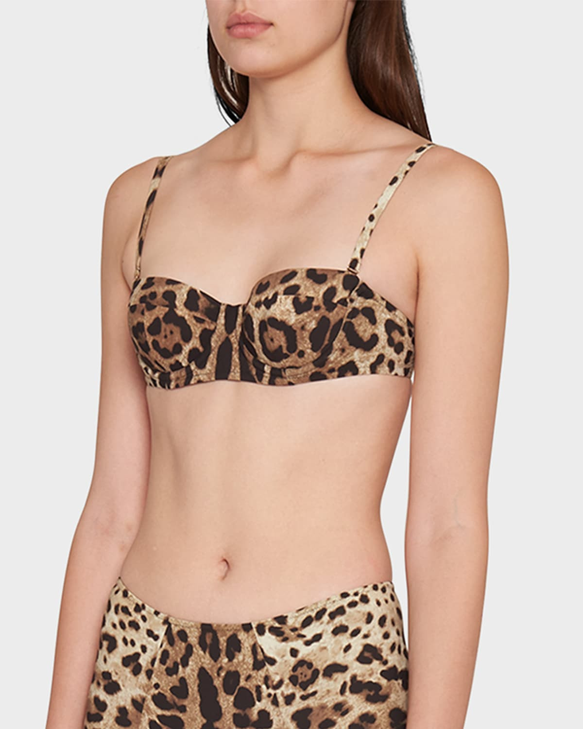 Dolceamp;Gabbana balconette bikini top crafted from leopardprint sensitive jersey Scoop neckline Adjustable straps Builtin underwire Padded cups Midback clasps Cotton/spandex Made in Italy Bottoms sold separately