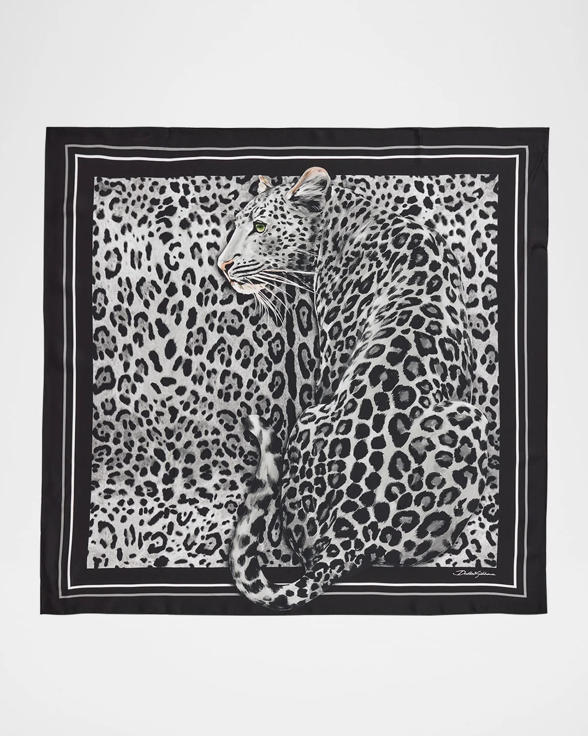 A hyperrealistic portrait of a leopard against a matching background animates this striking Dolceamp;Gabbana foulard. Approx. 35.43"Sq. Logo script printed in the right corner Handsewn hem May be styled multiple ways Silk Dry clean Made in Italy