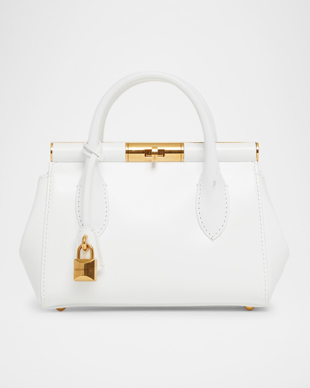 - Dolce&Gabbana "Marlene" top handle bag in leather - Detachable chain crossbody strap - Can be worn as a top handle or crossbody bag - Rolled top handles with padlock hardware - Framed top with turn-lock closure - Interior, one zip pocket - Feet protect bottom of bag - Approx. 5"H x 7"W x 3"D - Made in Italy