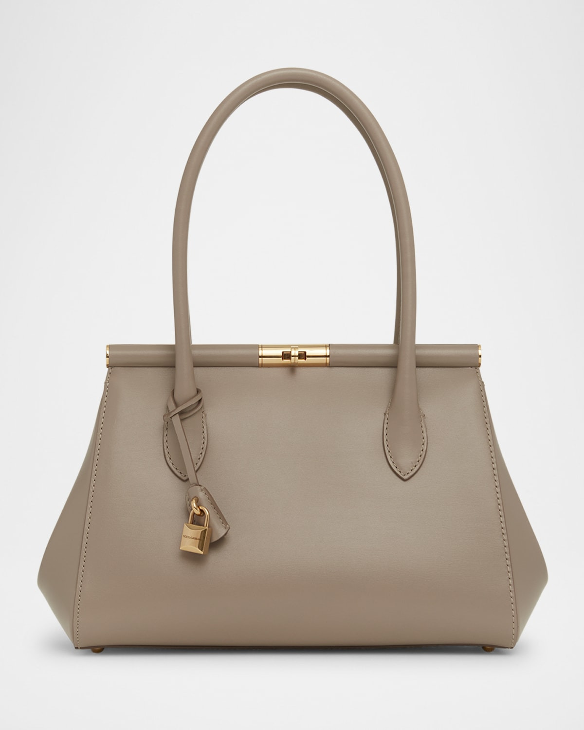 - Dolce&Gabbana "Marlene" top handle bag in leather - Rolled top handles with padlock hardware - Framed top with turn-lock closure - Interior, one zip pocket - Feet protect bottom of bag - Approx. 8"H x 12"W x 5"D - Made in Italy