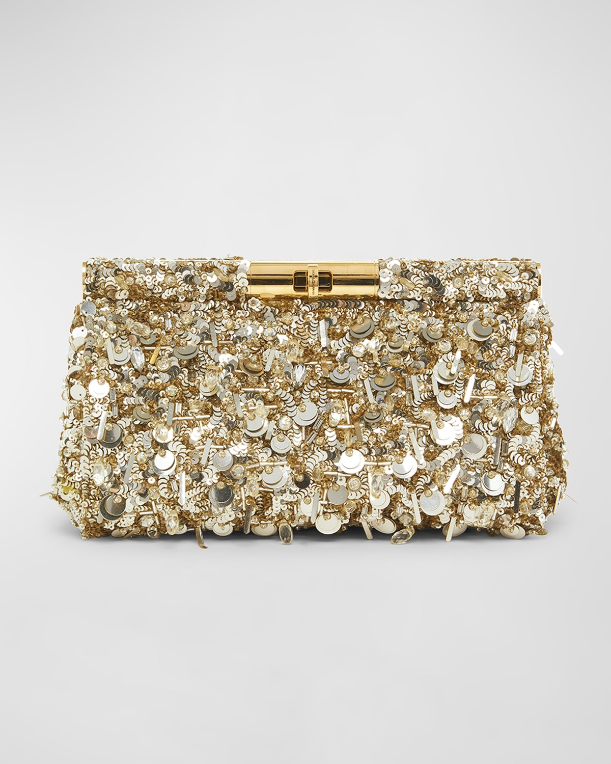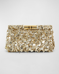 - Dolce&Gabbana "Marlene" clutch bag in sequined acrylic, glass, and ProModal® rayon - Embellished chain shoulder strap - Can be worn as a clutch or shoulder bag - Structured top with turn-lock closure - Interior, one slip pocket - Approx. 6"H x 9"W x 2"D - Made in Italy