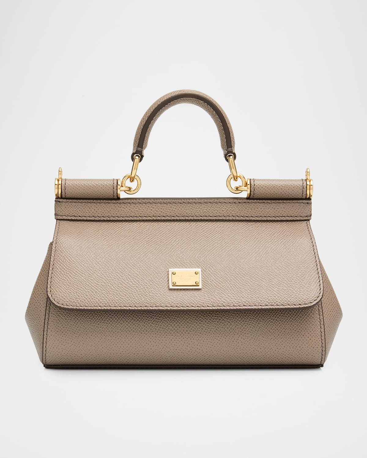 - Dolce&Gabbana "Sicily" top handle bag in leather - Top handle - Detachable, adjustable shoulder strap - Can be worn as a top handle or shoulder bag - Flap top with push-lock closure - Interior, one slip pocket - Approx. 6"H x 8"W x 3"D - Made in Italy