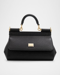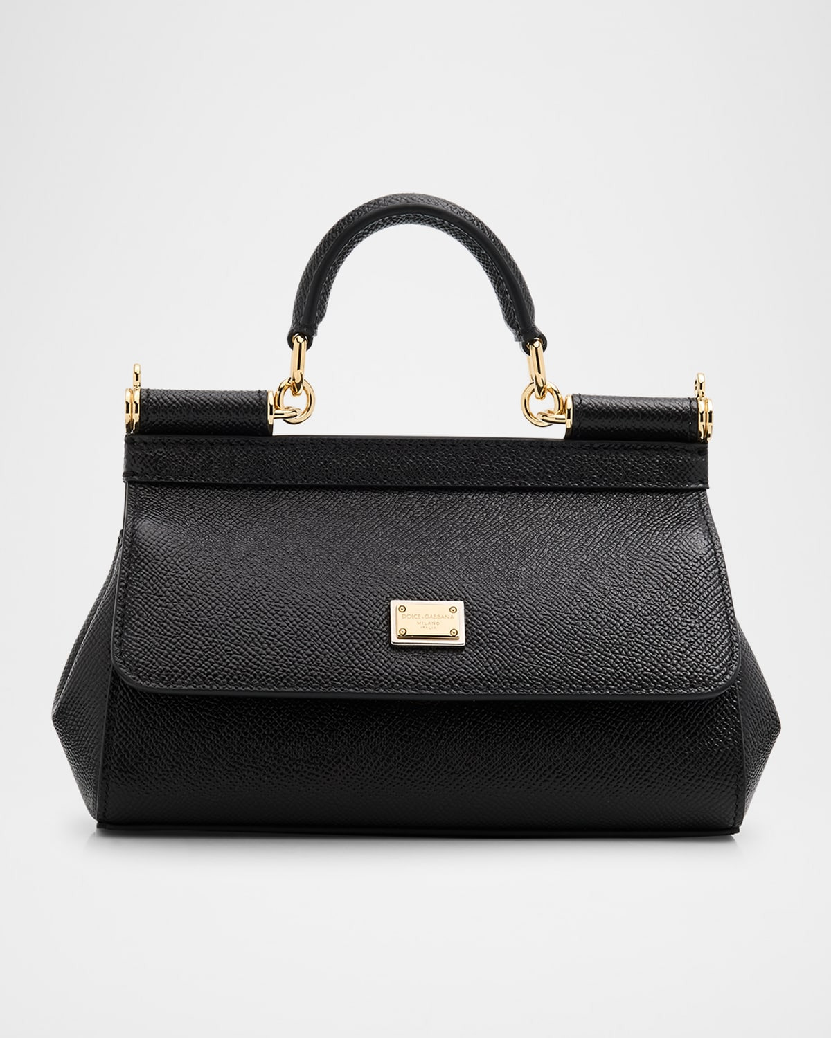 - Dolce&Gabbana "Sicily" top handle bag in leather - Top handle - Detachable, adjustable shoulder strap - Can be worn as a top handle or shoulder bag - Flap top with push-lock closure - Interior, one slip pocket - Approx. 6"H x 8"W x 3"D - Made in Italy