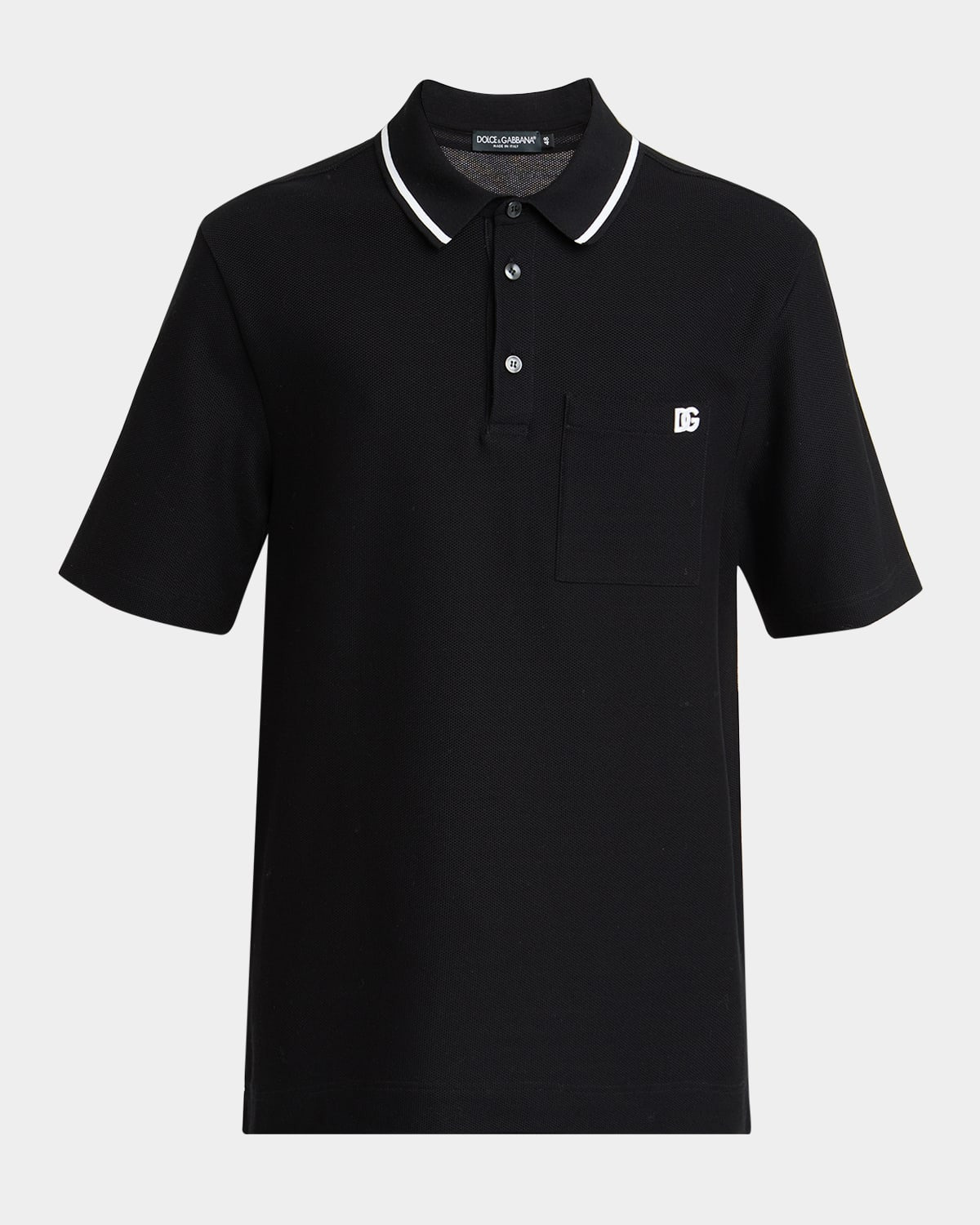 - Dolce&Gabbana polo shirt in cotton pique defined by an embroidered DG accent on the chest pocket - Spread collar with stripe trim - Three-button placket - Short sleeves - Vented sides - Pullover style - Cotton - Made in Italy