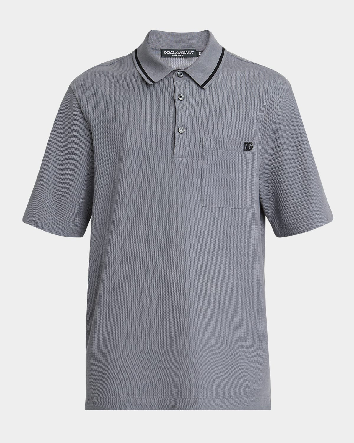 - Dolce&Gabbana polo shirt in cotton pique defined by an embroidered DG accent on the chest pocket - Spread collar with stripe trim - Three-button placket - Short sleeves - Vented sides - Pullover style - Cotton - Made in Italy