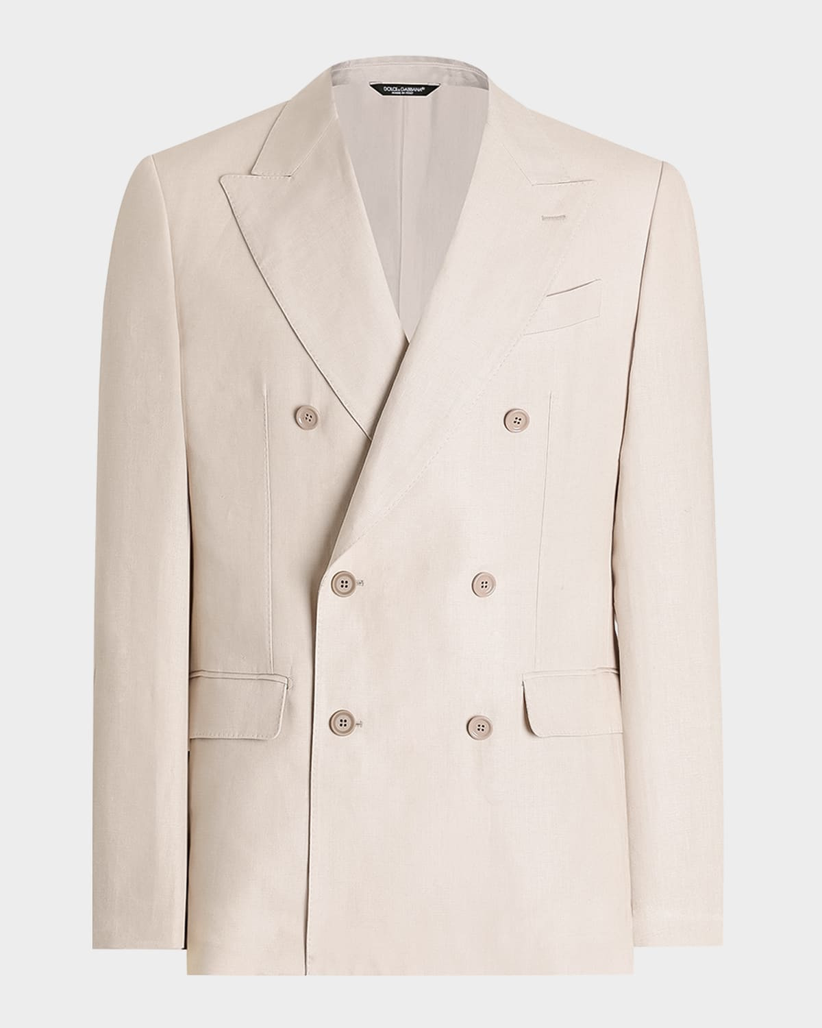 - Dolce&Gabbana deconstructed linen jacket - Peak lapels - Double-breasted front - Long sleeves with four-button cuffs - Chest welt pocket - Hip flap pockets - Vented back - Linen - Lining: Cotton - Hand wash or dry clean - Made in Italy