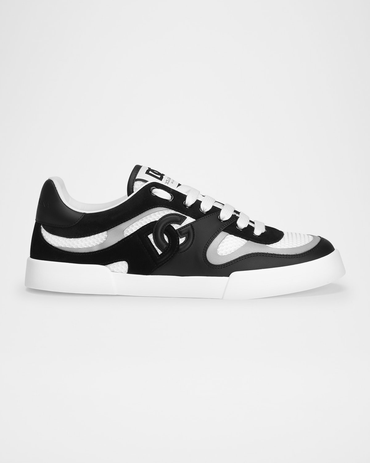 - Dolce&Gabbana low-top sneakers in mesh fabric, suede, and leather - Flat heel - Round toe - Lace-up vamp - Woven label on tongue - Padded collar - Backstay logo - Leather lining - DG logo on the sides - Rubber outsole - Made in Italy