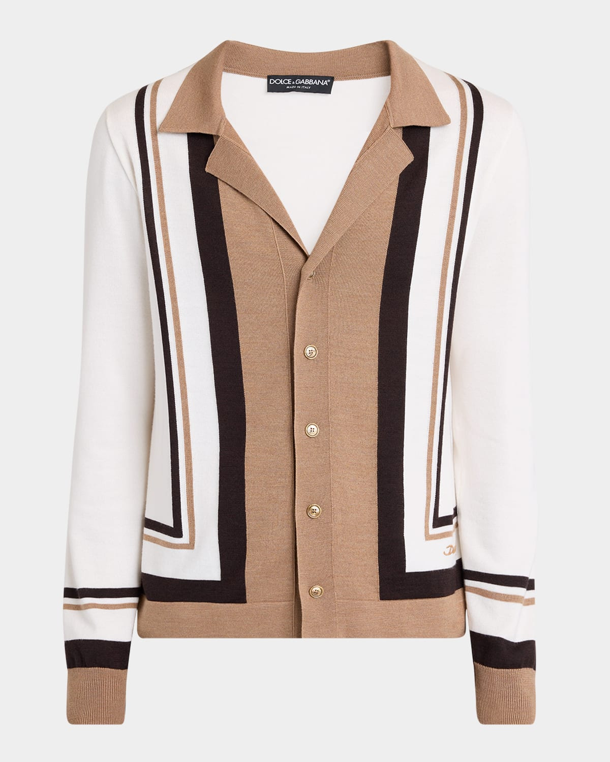 - Dolce&Gabbana colorblock knit shirt - Notched collar - Button front closure - Long sleeves - Virgin wool/silk - Made in Italy