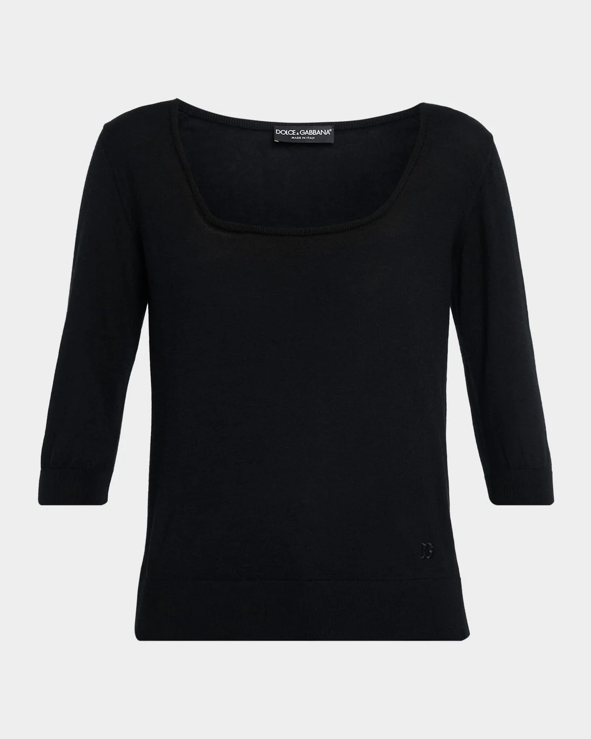 Dolceamp;Gabbana sweater is knit from soft cashmere Scoop neckline 3/4 sleeves Relaxed fit Hip length Ribbed cuffs and hem Pullover style Cashmere Made in Italy