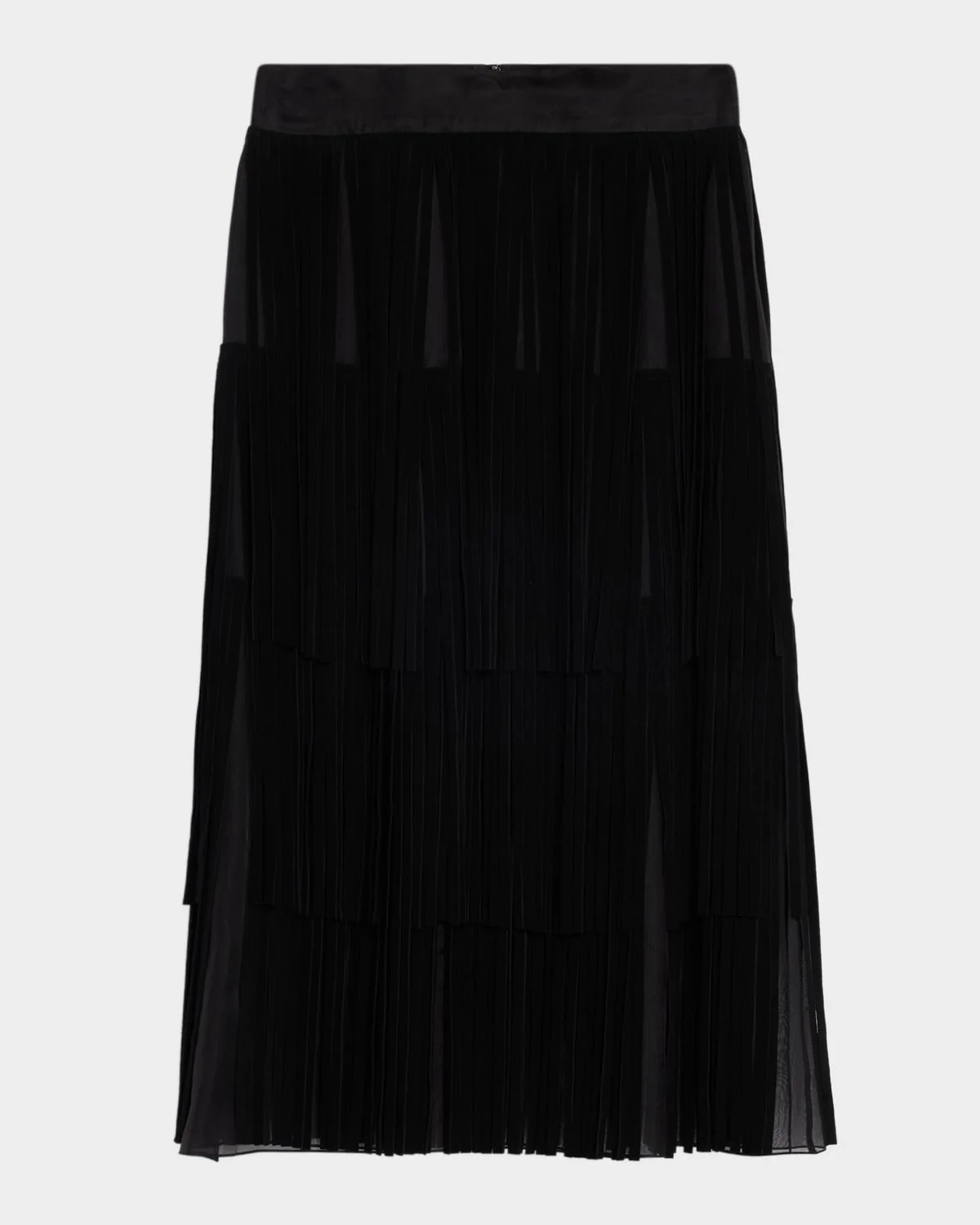 Dolceamp;Gabbana skirt is crafted from silk organza accented with tiered fringe High waist Hem falls below the knee Skirt falls straight from hip to hem Concealed back zip Silk Made in Italy