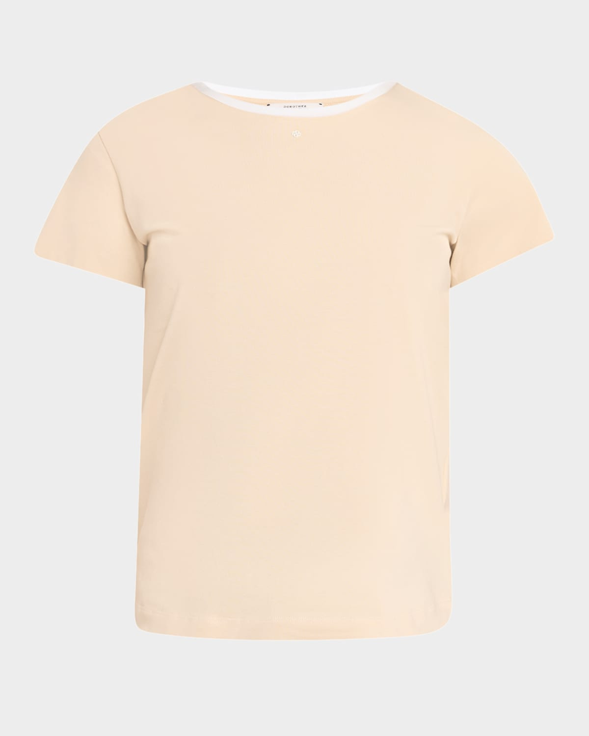 - DOROTHEE SCHUMACHER "All Time Favorites" T-shirt contrasted with bright trim along the neckline - Crew neckline - Short sleeves - Relaxed fit - Pullover style - Cotton/elastane - Unlined - Machine wash warm, dry flat - Trim: Metal - Made in Portugal