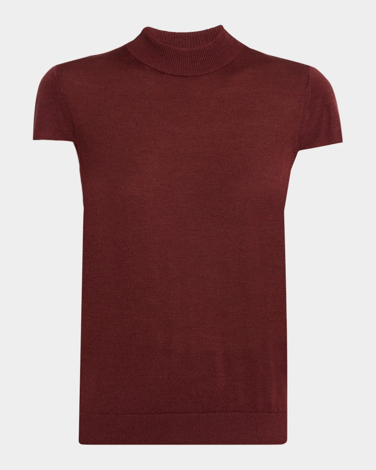 This DOROTHEE SCHUMACHER "Essential Ease" top is knit in a fine Merino woolsilk blend Mock neckline Cap sleeves Relaxed fit Pullover style Wool/silk Dry clean Made in Portugal