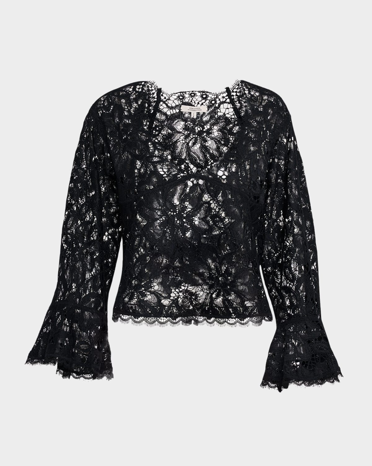 Lacy Dream Cropped Flare-Sleeve Blouse