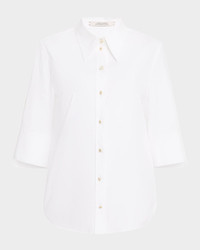 Pure Power Button-Down Cotton Poplin Blouse
