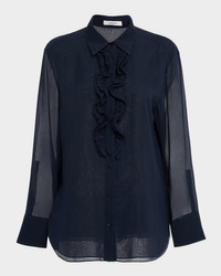 Sheer Dreams Ruffle-Trim Silk Georgette Blouse