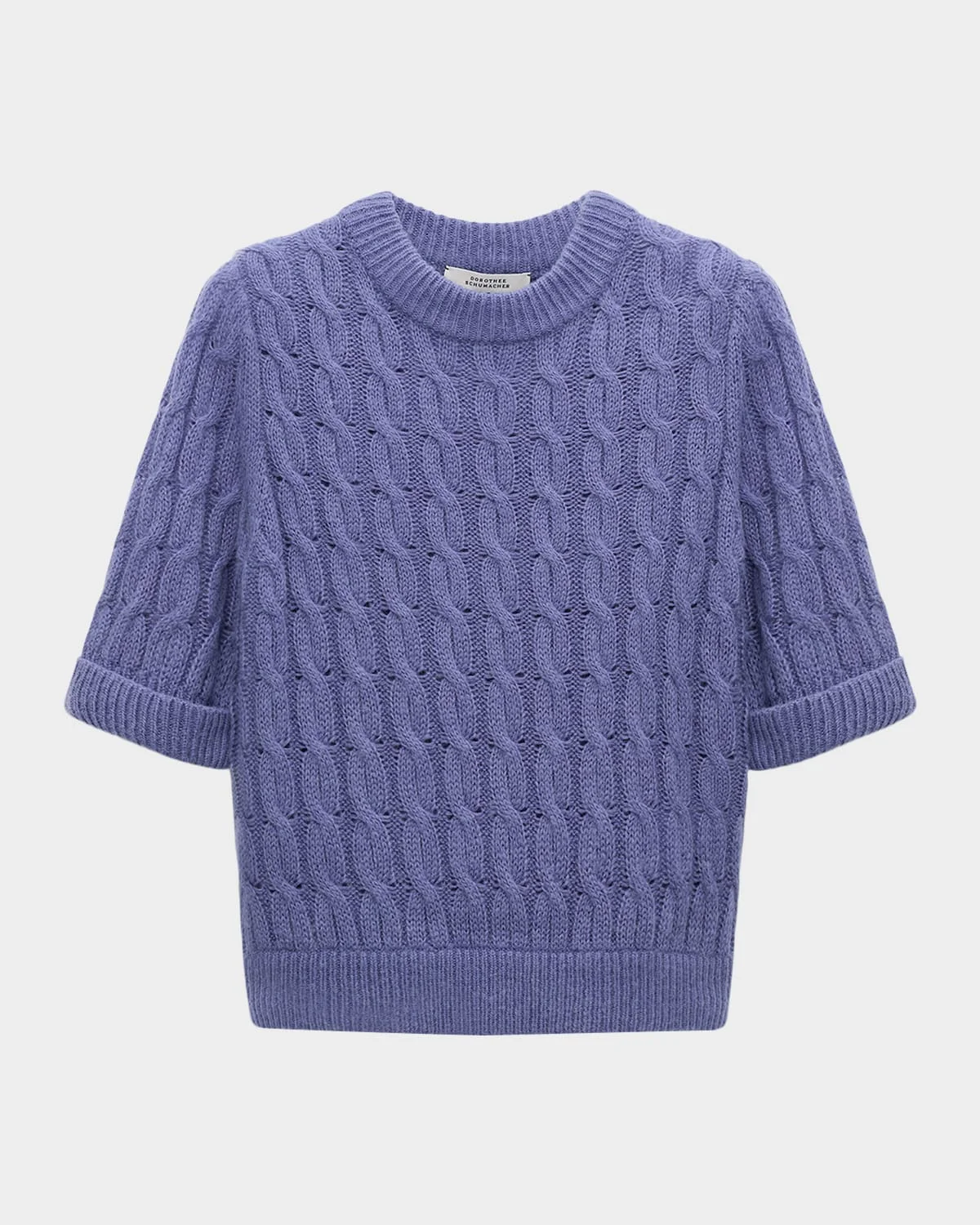 Knit in an alpacablend, this DOROTHEE SCHUMACHER "Sheer Softness" pullover features a bold cable design with an extrasoft finish Crew neckline Short sleeves Relaxed fit Pullover style Nylon/polyamide/wool/lyocell Dry clean Imported