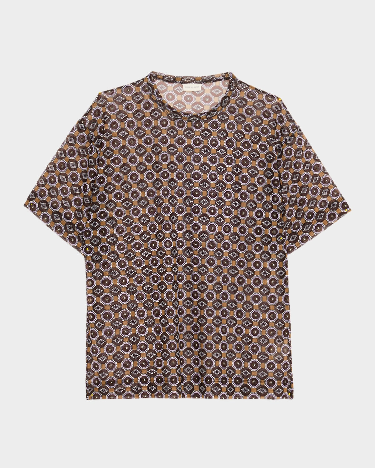 Designed with a slight stretch, the "Hoge" semisheer Tshirt from Dries Van Noten is produced with the brand's signature Mini Tie motif. Crew neckline Short sleeves Oversized silhouette Slipover style Nylon/polyamide/elastane Imported