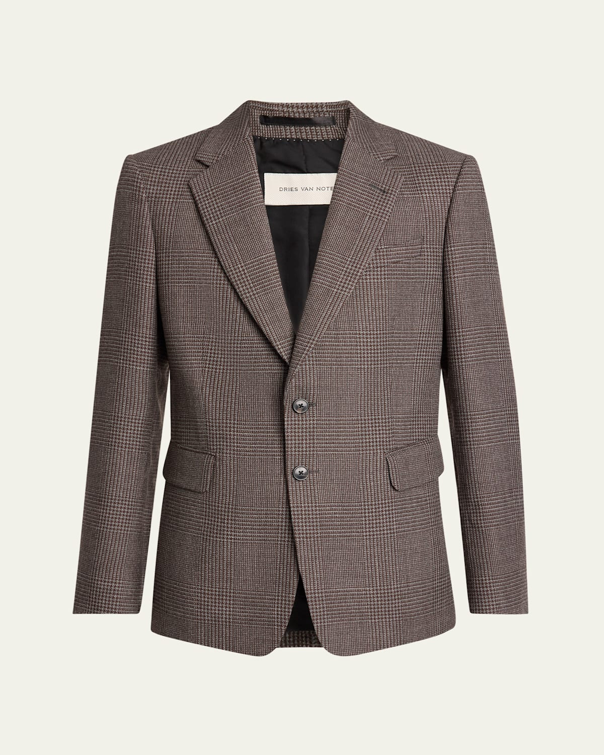 - Dries Van Noten "Blaine" single-breasted jacket, cut from Glen plaid suiting for a classic look - Notched lapels - Long sleeves - Two front flap pockets - Chest welt pocket - Double vent - Slim fit - Front button closure - Wool - Made in Morocco
