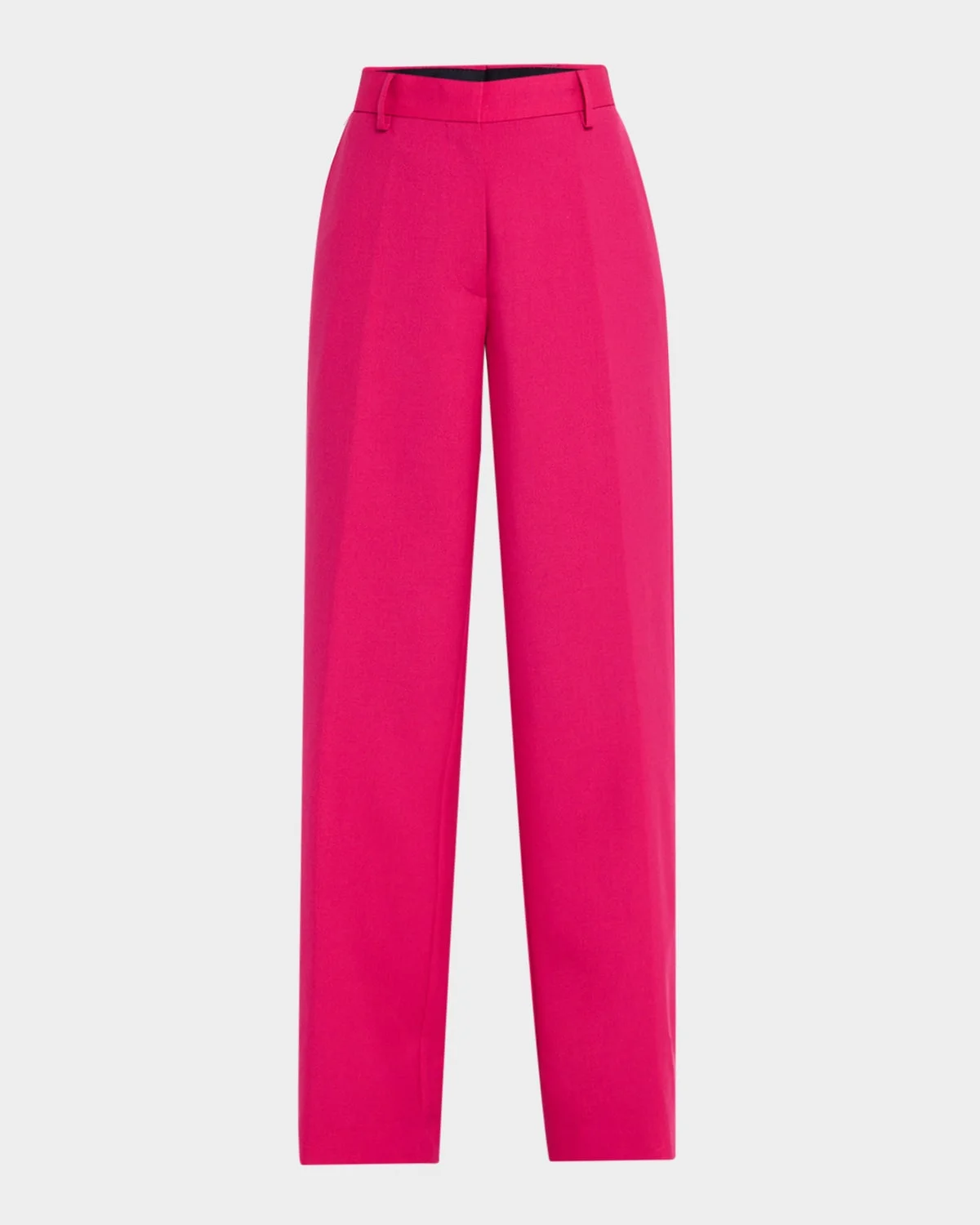 Dries Van Noten "Paxy" pants Full length High rise Straight legs Side slip pockets; back welt pockets Tab/zip fly; belt loops Wool/mohair Made in Hungary