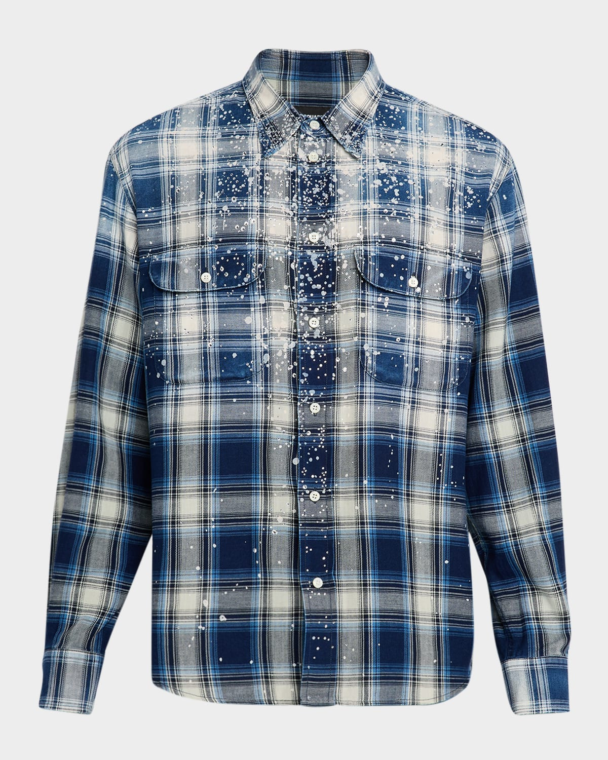 - Dsquared2 button-down shirt in check cotton, highlighted with splatter effect and glistening crystal embellishments - Point collar - Button placket - Chest flap pockets - Long sleeves - Round barrel cuffs - Curved hem - Logo on the back collar - Cotton - Hand wash - Made in Italy