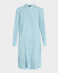 Eileen Fisher midi shirtdress in silk twisted for a crinkled texture Dyeing meets the bluesign® standard for chemical, water, and energy usage Approx. 43"L from shoulders to hem Band collar; button front Long sleeves; button cuffs Hem hits around the knee Shift silhouette Silk Machine wash cold Imported