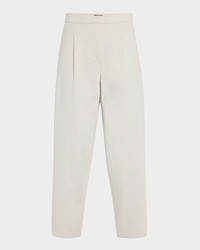 Eileen Fisher pants in lightweight, structured cottonblend ponte Crafted with recycled polyester yarn made from plastic bottles Approx. 27.5" inseam Midrise sits high on the hips Pleated front Side slant pockets Back welt pockets Cropped at the ankle Tapered legs Button/zip fly Organic cotton/polyester/polyurethane Machine wash cold Imported