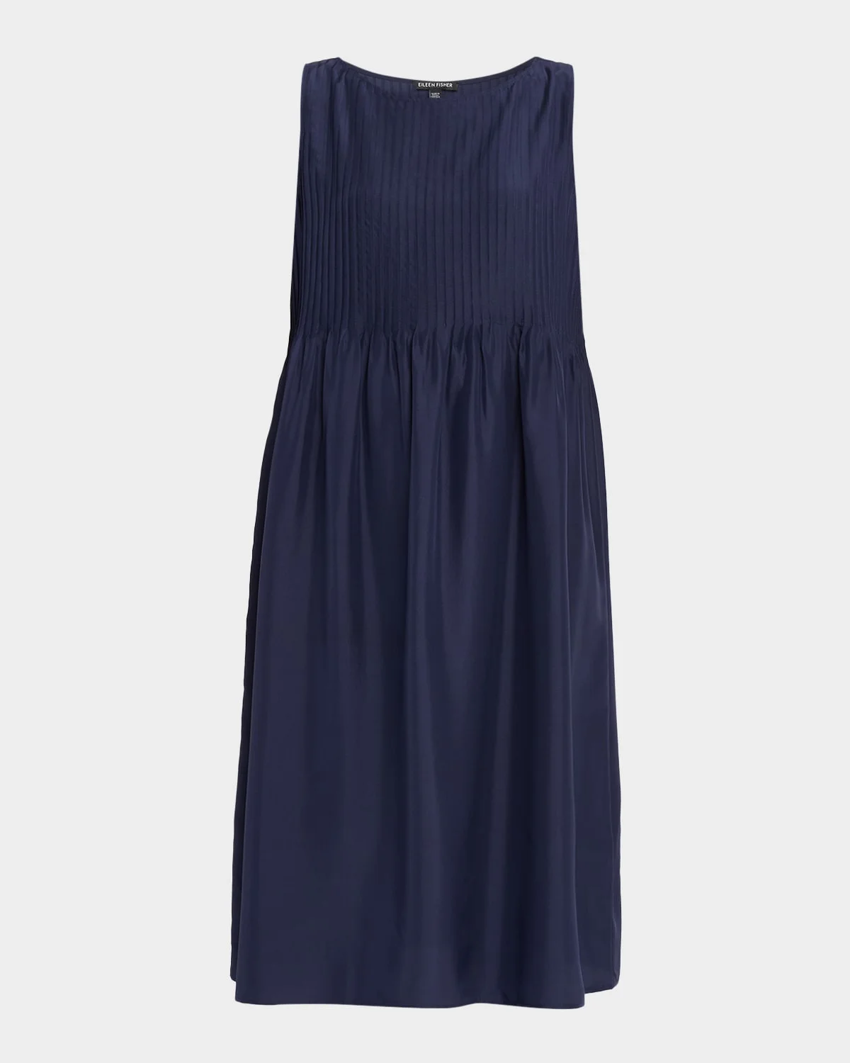 Engineered with a pleated bodice, this Eileen Fisher dress flows with an effortless ease that prioritizes comfort. This silhouette explores sculptural minimalism, featuring a graduated, A-line hem that provides a sense of airy movement Approx. 42"L from shoulder to hem Bateau & nbsp;neckline & nbsp; Sleeveless Pleated bodice Knee length Easy fit & nbsp; Silk Hand wash Imported SIZE & FITModel measurements: 5 & apos;10" tallModel is wearing a US size 4/Small