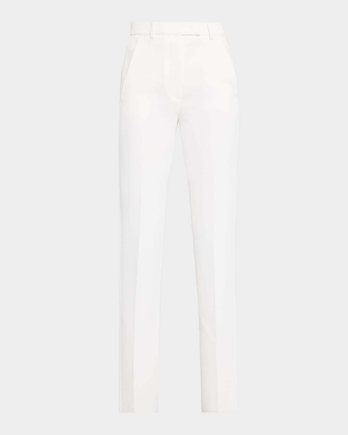 - Emporio Armani trousers designed in a sophisticated waffle weave for a dense honeycomb effect - Mid-rise sits high on the hips - Flat front - Side slant pockets - Back welt pocket - Cropped at the ankle - Slim, straight legs - Extended tab/zip fly; belt loops - Polyester - Dry clean - Imported