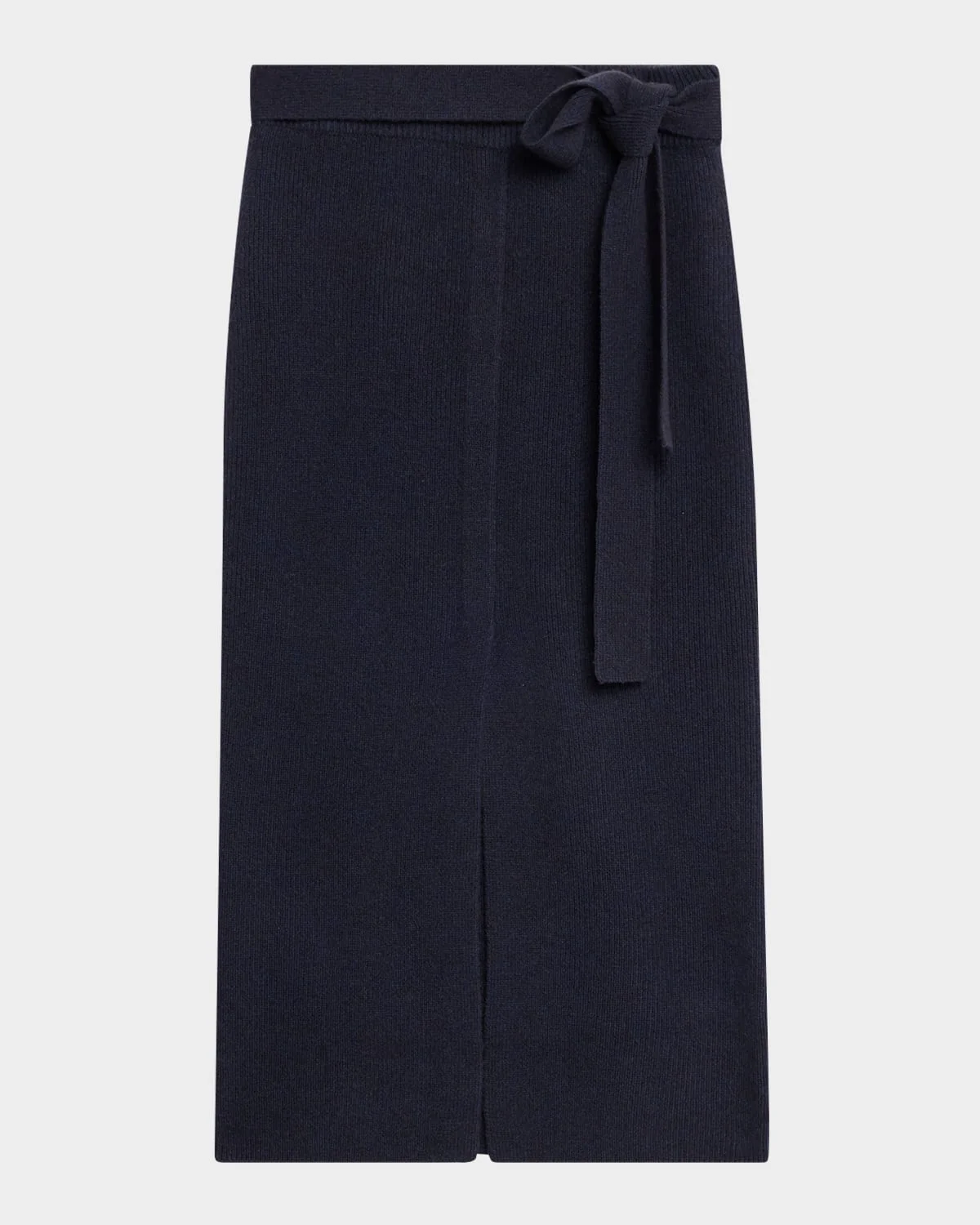 Emporio Armani long plain knit skirt defined by a front slit. A versatile style to complete casual and elegant looks Removable selftie belt Midi length Pencil style Slipon style Wool Dry clean Imported