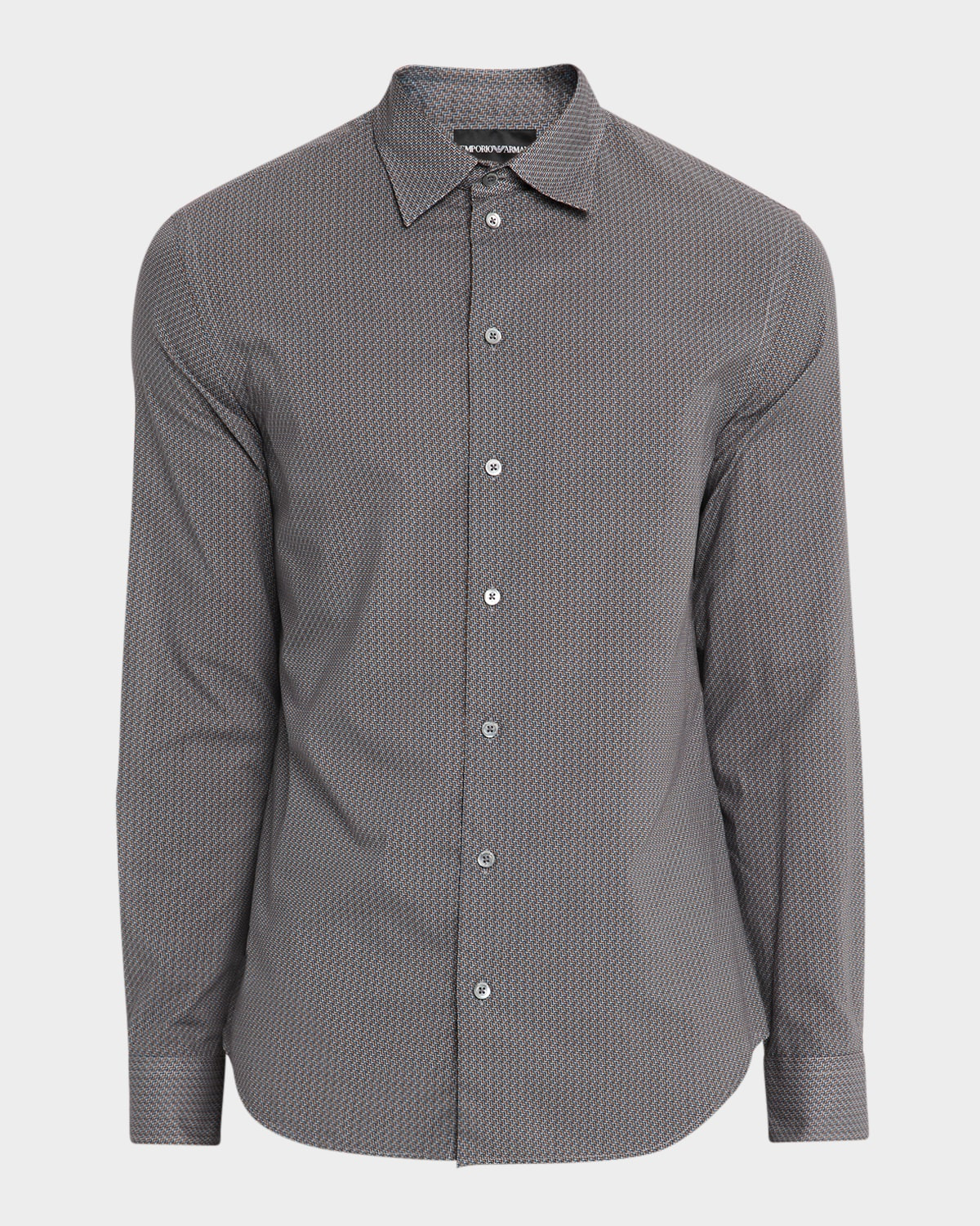 - Emporio Armani sport shirt in breathable cotton unveiling a unique diagonal wave pattern - Spread collar - Button placket - Long sleeves - Round barrel cuffs - Back yoke - Curved hem - Cotton - Dry clean - Made in Albania