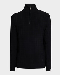 Men's Grid Check Jacquard Quarter-Zip Sweater