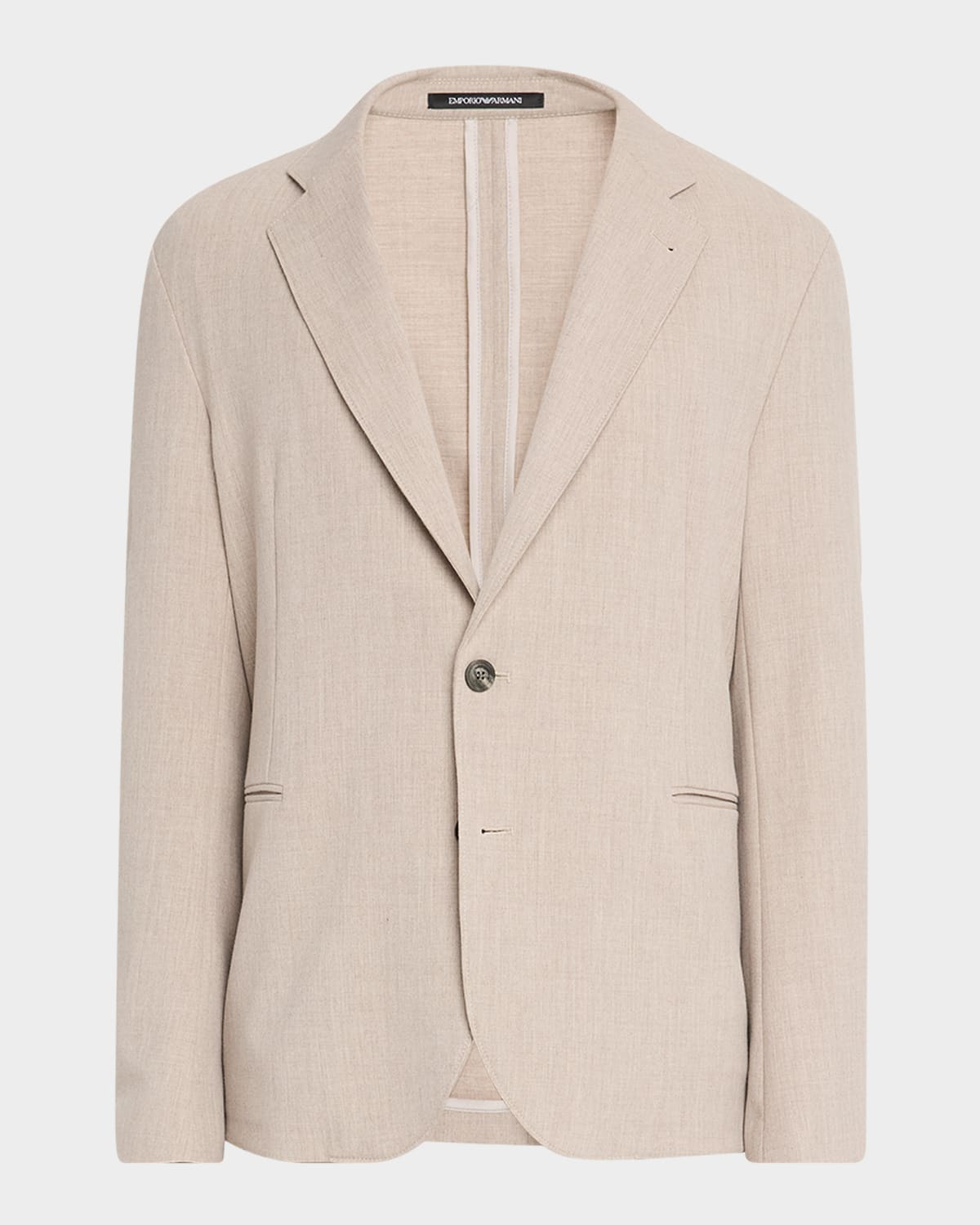 - Emporio Armani sport jacket in soft stretch gabardine fabric for a comfortable finish - Notched lapels - Single-breasted front - Hip besom pockets - Long sleeves - Polyester/viscose - Dry clean - Made in Romania