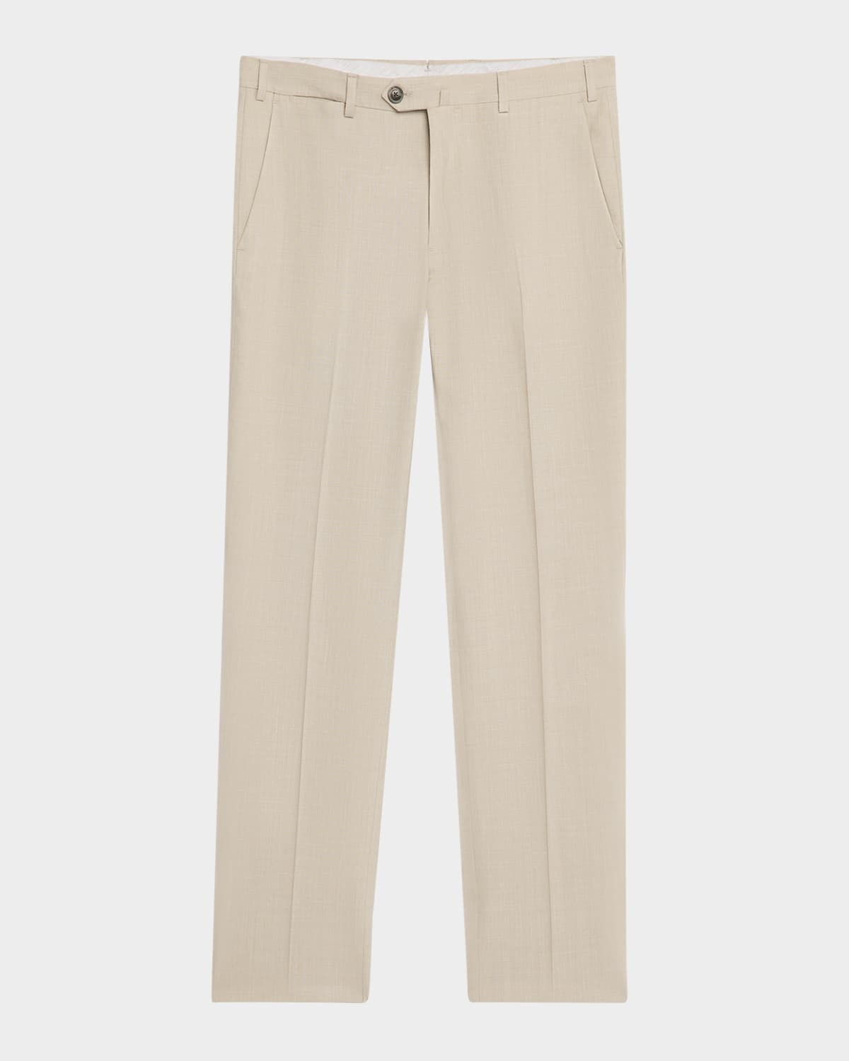 - Emporio Armani textured dress pants - Regular rise - Flat front - Extended button/zip closure - Front slant pockets - Back welt pockets - Full length - Regular fit - Wool/silk/linen - Dry clean - Imported