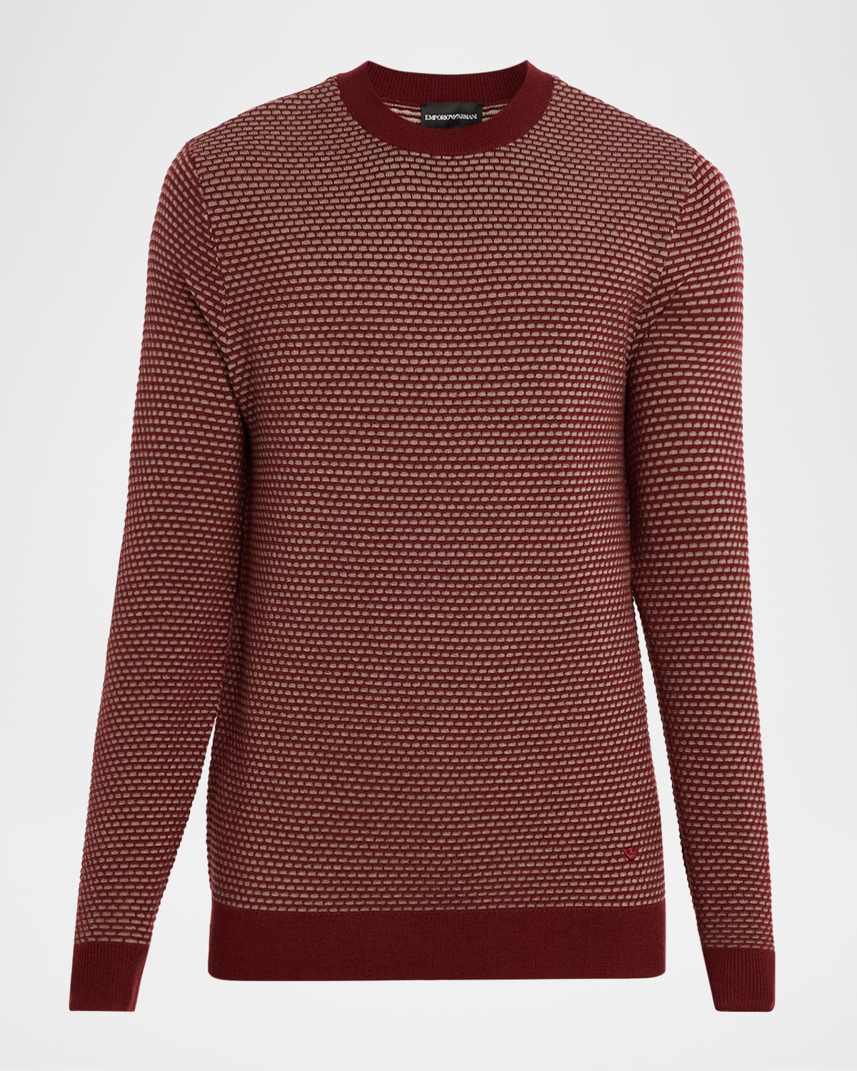 - Emporio Armani sweater in a wool-blend jacquard showcasing a petite scalloped effect - Crew neckline - Long sleeves - Contrast ribbed cuffs and hem - Pullover style - Virgin wool/nylon/polyamide - Dry clean - Imported