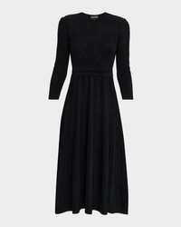 Emporio Armani dress exudes sophistication with its Ottoman knit paneled design Crew neckline Long sleeves Midi length Aline silhouette Slipover style Viscose/nylon/polyamide/elastane Dry clean Imported