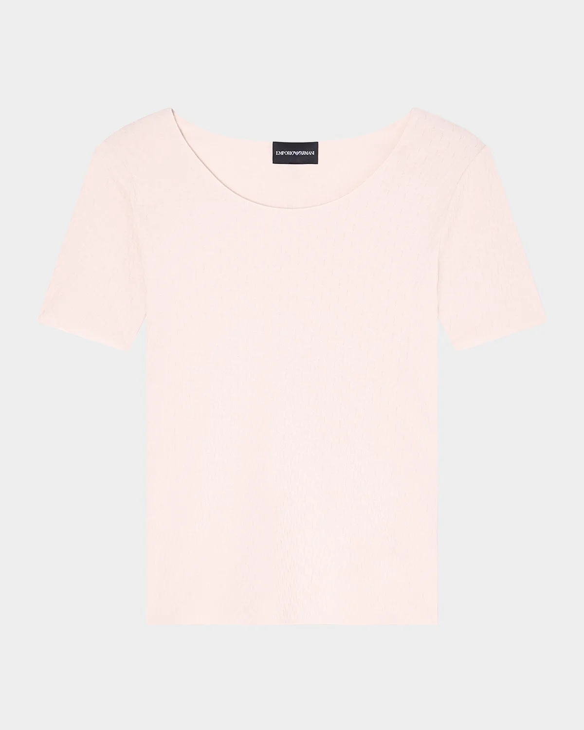Emporio Armani ultra-soft cotton tee detailed with a delicate pointelle design & nbsp; Scoop neckline & nbsp; Short sleeves Slim fit Hem sits at the hip Pullover style & nbsp; Cotton Dry clean Imported SIZE & FITModel measurements: 5 & apos;10" tallModel is wearing a US size 4/Small