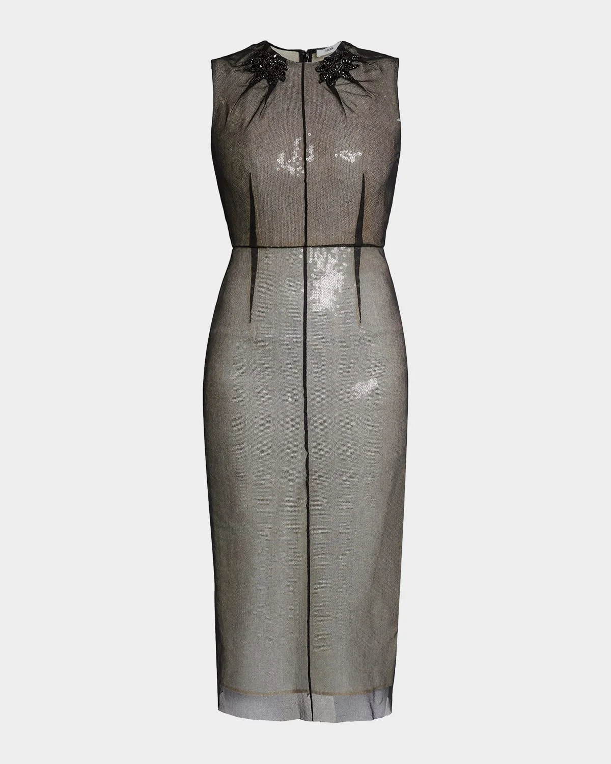 EMBELLISHED ORGANZA SEQUIN MIDI DRESS