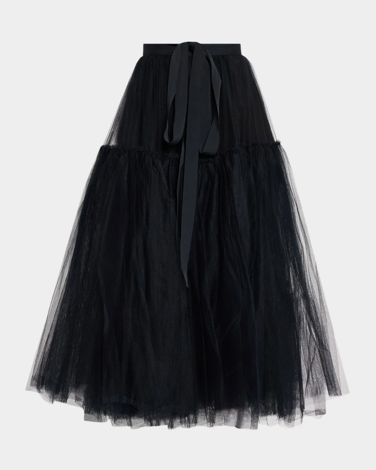 Erdem voluminous skirt is crafted from layers of sheer tulle. Grosgrain bow belt Ankle length Aline silhouette Slipon style Nylon/polyamide Lining: Silk Dry clean Made in United Kingdom