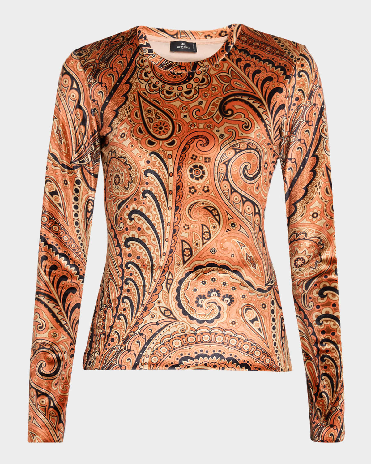 Emerald Paisley Velvet Long Sleeve Crewneck