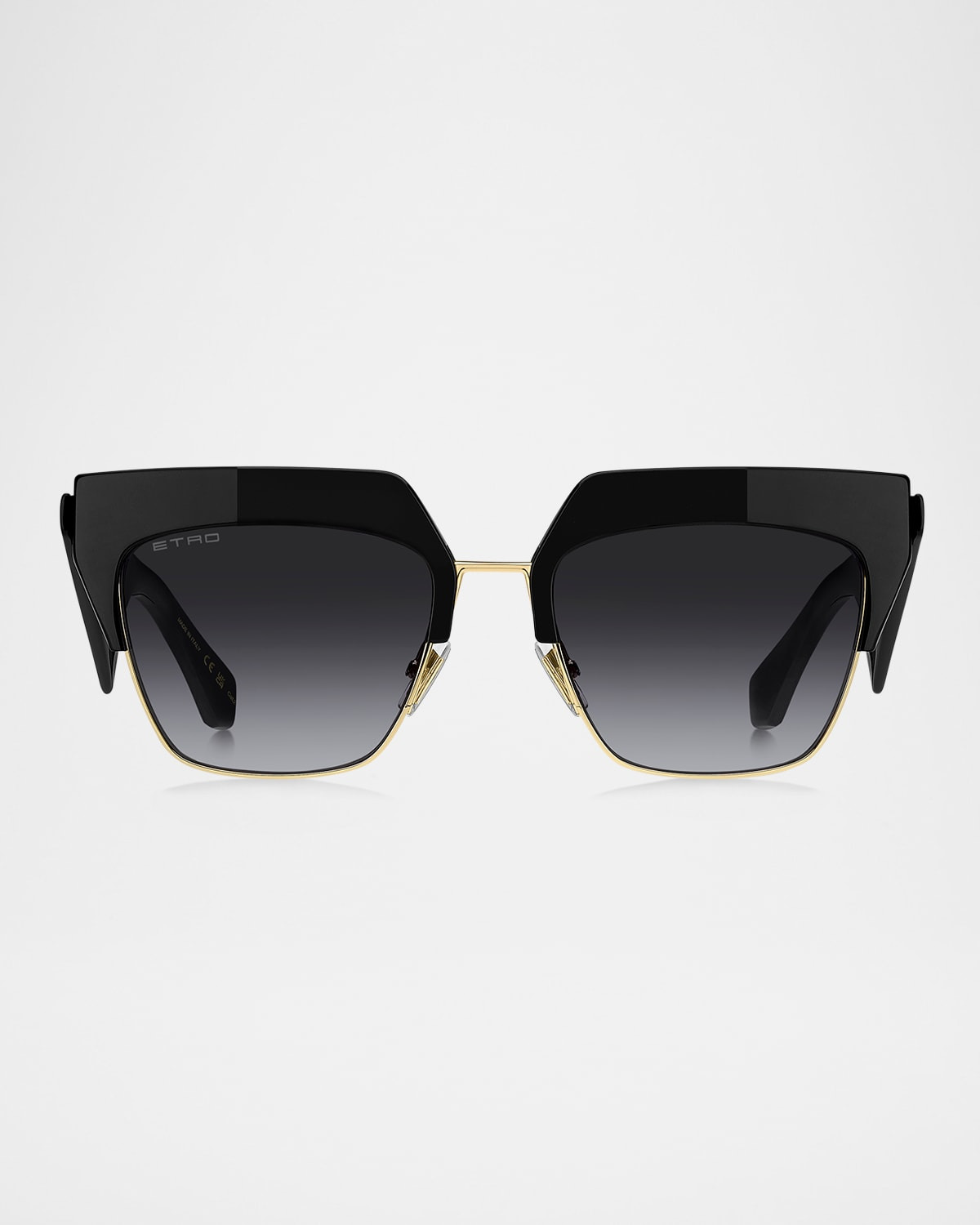 - Etro "Etroclub" square sunglasses feature a bold architectural top bar - Eye/bridge/temple (in mm): - 56-18-145 - Gradient lenses - Adjustable nose pads - Gradient lenses - Triangular temples with logo lettering - Wide, tapered arms - Acetate/metal - 100% UVA/UVB protection - Wipe clean - Made in Italy - Proposition 65 warning for California residents