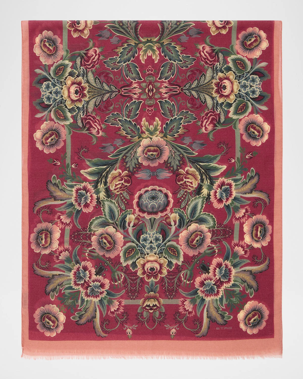 - Etro floral print scarf in wool and cashmere - Approx. 67"L x 27.6"W - Eyelash fringe - May be styled in multiple ways - Professional cleaning recommended - Made in Italy