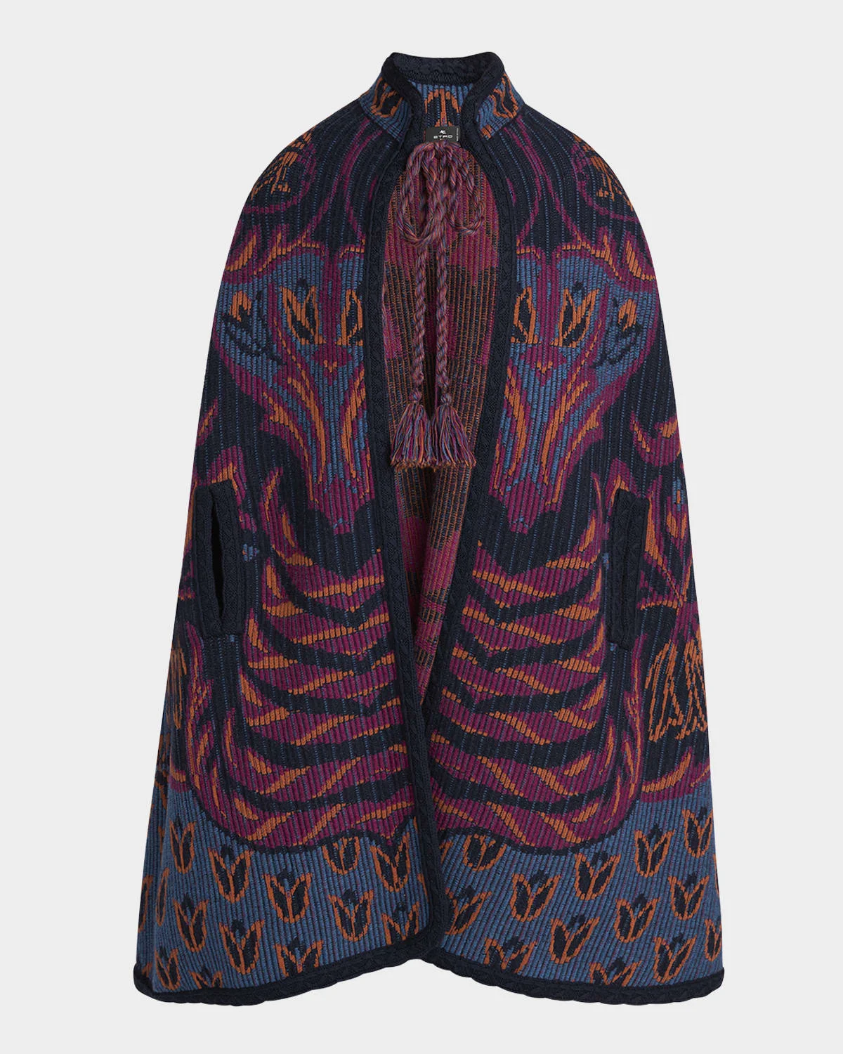 floral-jacquard tassel-detail cape