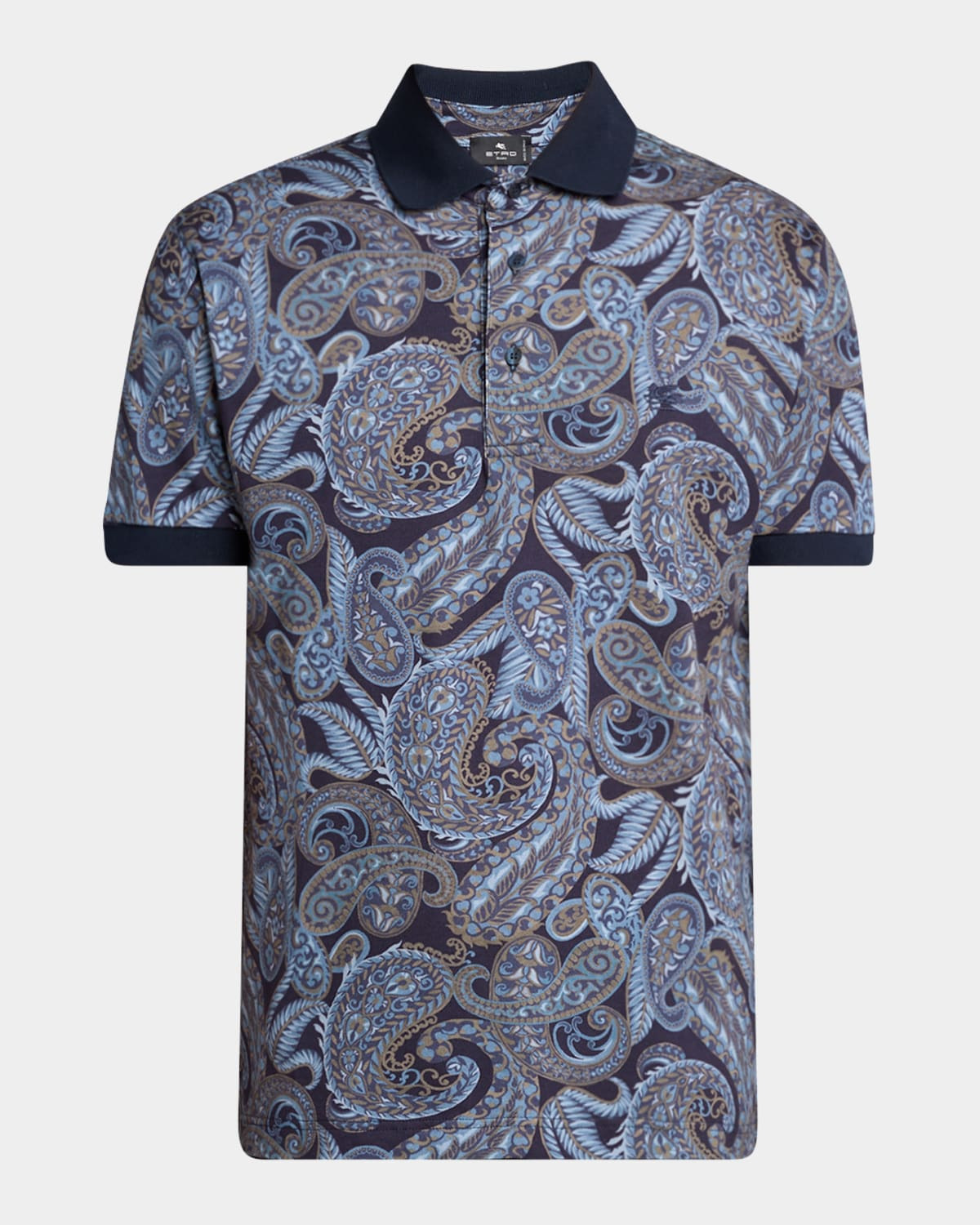 - Etro polo shirt in breathable cotton highlighting a bold paisley print - Shirt collar - Three-button placket - Short sleeves - Contrast ribbed cuffs - Uneven vented sides - Pullover style - Cotton - Professional cleaning recommended - Made in Italy